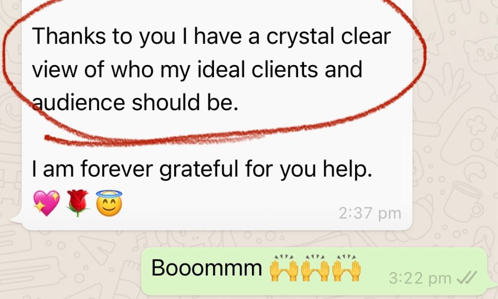 “Thank you Pankita, I secured my first paying client after my very first session with you. Feels absolutely awesome. I’m definitely on the road to success with your expertise and guidance.”