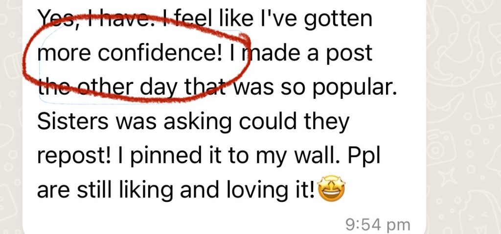 “I was really able to dig deep and identify what some of my limiting beliefs are and give them a new meaning. A positive meaning. This was very powerful for me. It has helped me to not only focus on the negative, which doesn’t serve me, but flip that into the positive. I feel my confidence coming back.”